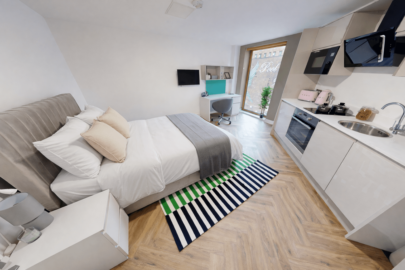 डीलक्स स्टूडियो स्नातकोत्तर छात्रों, अंतरराष्ट्रीय छात्रों और स्नातक छात्रों के लिए उपयुक्त है जो शांत और अधिक निजी रहने का वातावरण पसंद करते हैं। यह विशेष रूप से उन लोगों को आकर्षित करता है जो लिवरपूल शहर के केंद्र में आधुनिक छात्र आवास के लाभों का आनंद लेते हुए अध्ययन या आराम के लिए अतिरिक्त स्थान चाहते हैं।