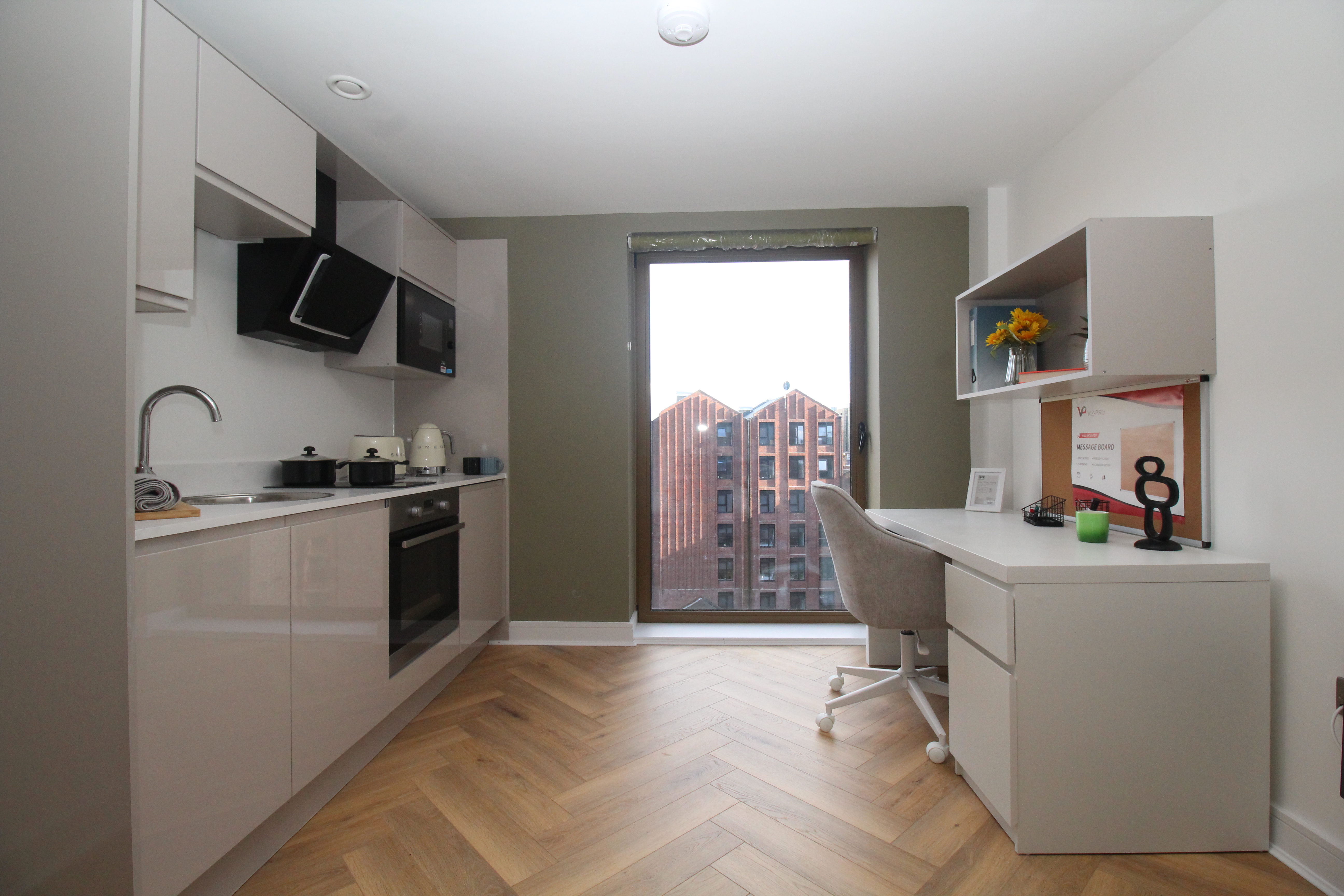 我们每间精品单间公寓均经过精心设计,为您提供完全的自由与独立空间。在实用与时尚兼具的精美装潢环境中,您可独享厨房、浴室及学习空间。